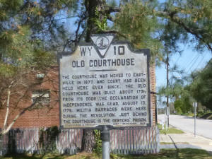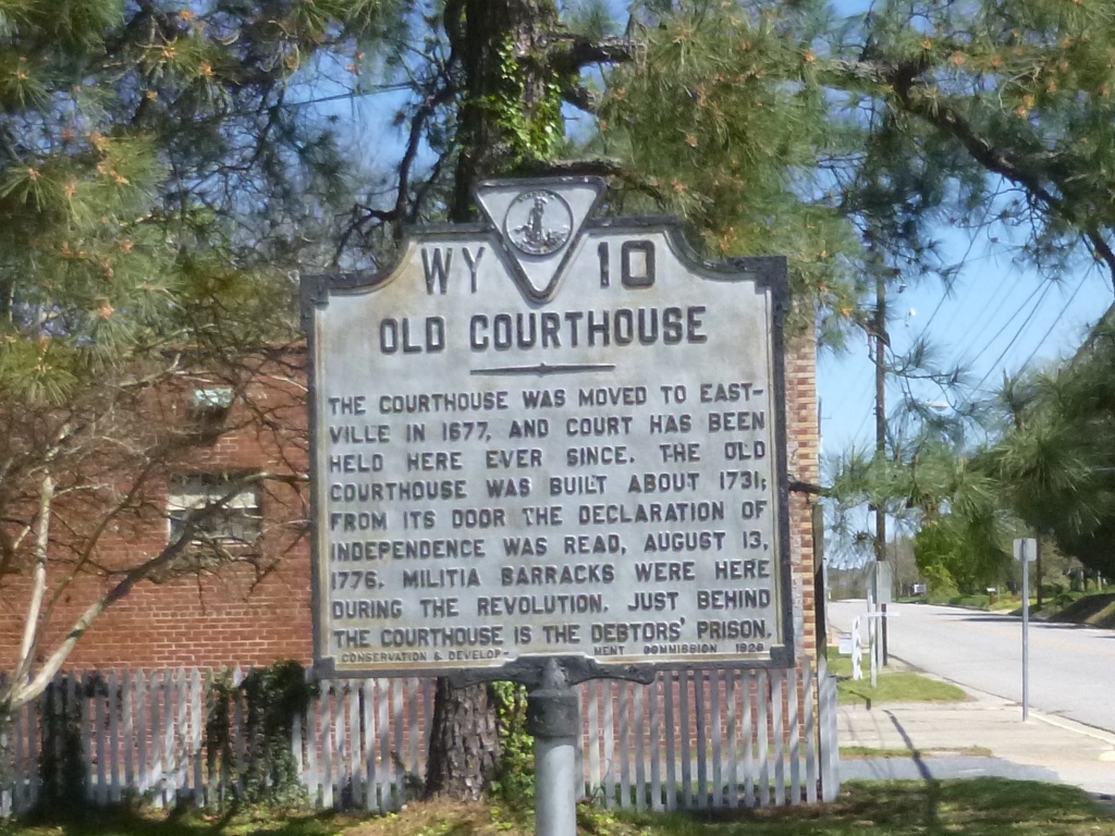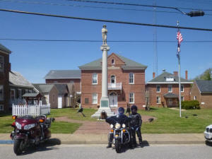 Eastville Courthouse Buildings, dating from the 1730's We took a photo for an "E" county letter. A fellow came out of the building and started to armor up to mount on his Honda Goldwing when he asked if we would like him to take a photo of both of us |