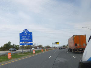 The next hour and a quarter was not fun. All freeway. Traffic was heavy and road surface was terrible, and full of crazy drivers. Every two or three minutes someone would buzz by weaving in and out. We rode about 40 miles om the Beltline around the north side of the District. Map We came from the east on 50 and out the west onto 267 |
