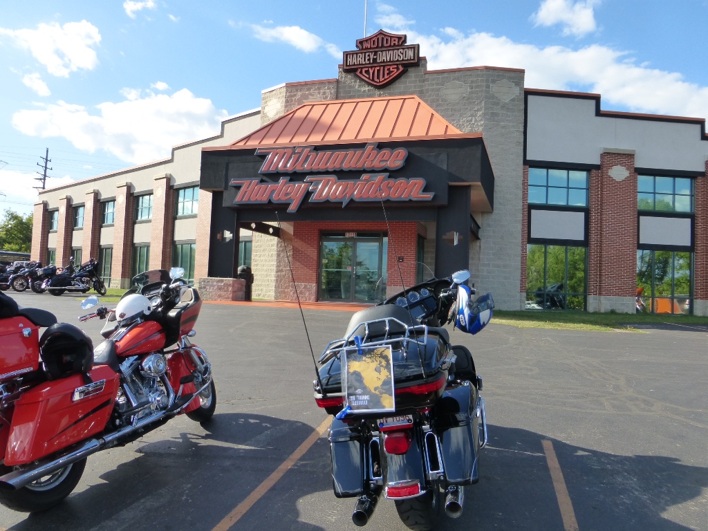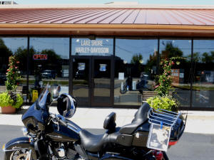not noticed in my preparations: Lake Shore Harley-Davidson As I am getting ready to leave, the technician from where I rented the bike walked up. He was running an errand and happened to be there too. |