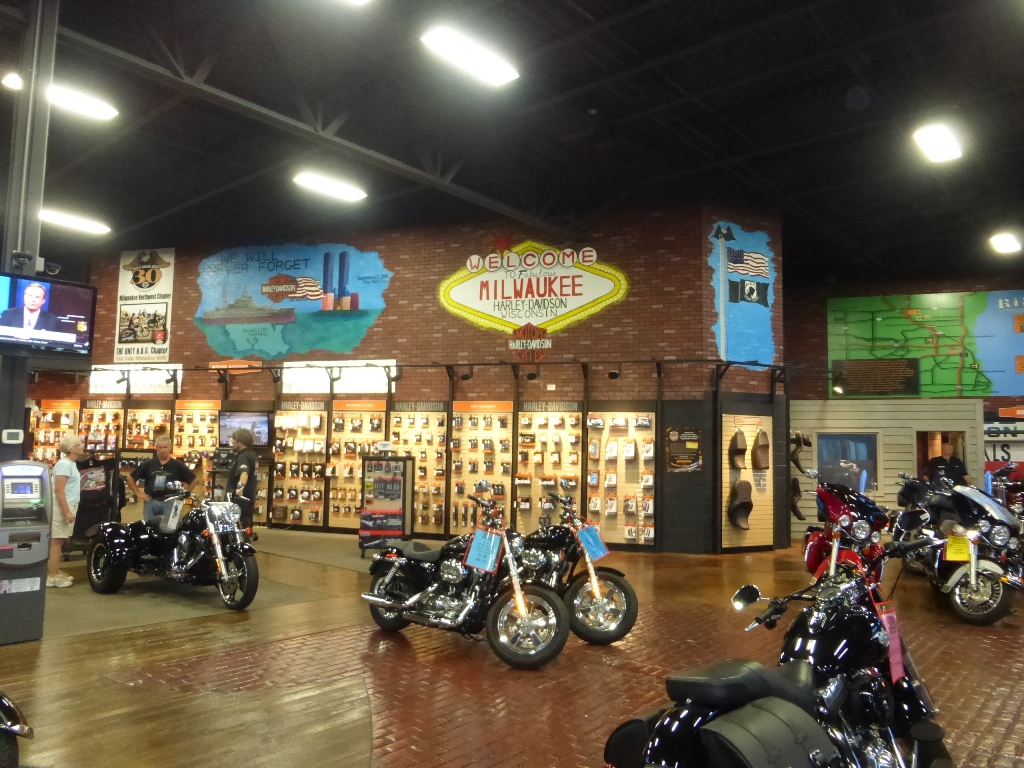 Milwaukee Harley-Davidson Not the most friendly place. I asked if they had a water fountain and the greeter at the door directed me to a vending machine I had to have someone paged to check me out in the clothing section |