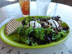 Lunch Time: I chose a place called L'Attitude because they have an outdoor patio right across the street from the lake I had a "Farmer's Delight" salad which has greens, goat soft cheese, dried cherries, candied walnuts, candied bacon, and some other stuff How can anything with candied bacon be bad? The weather was outstanding! |