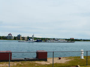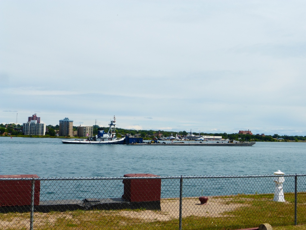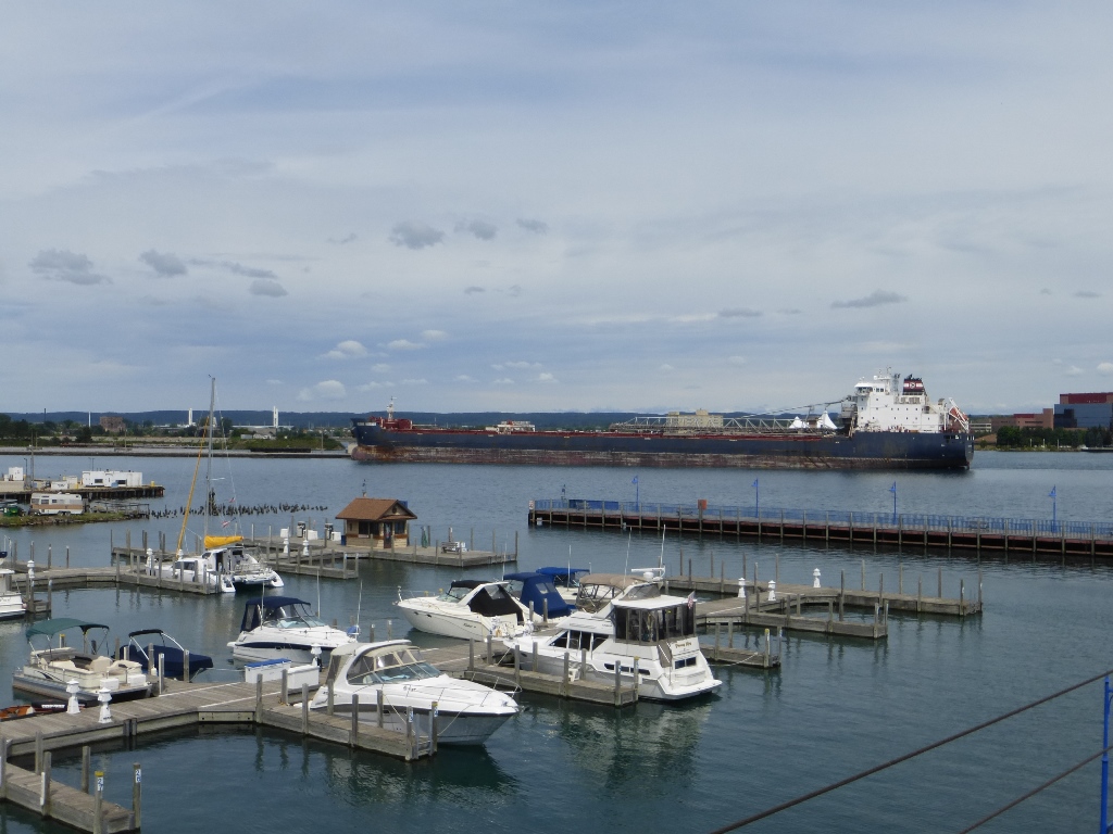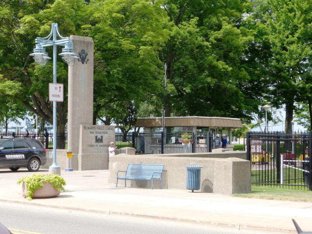 Soo Locks The difference in water level between Lake Superior and Lake Huron is 21 feet. The locks allow ocean ships access to Lake Superior. It is a very busy channel However, while I was there, no ships were in sight. The couple I saw earlier were my chance to watch the locks in operation and I missed it There is a nice visitor center As an important passage way, Homeland Security protects the locks |