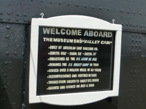 Museum Ship Valley Camp I met a fellow outside the museum and we got to talking He's from New York, having immigrated from Korea 42 years ago He has a daughter who lives in Pacifica I asked him if knew about the Gorilla Barbecue His face lit up and said how he eats too much when he visits his daughter I took his picture and he took mine, but declined to appear on a web page A couple ships were going by while I was at the Museum (more below) |