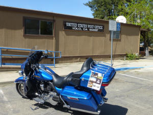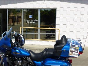 From there, I rode up to Vacaville I intended to find the post office, but forgot the exit so I rode on to the Iron Steed HD dealership They do not have a convenient, large sign for an easy photo so I made do Dealership Point for my ABC's |