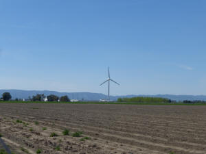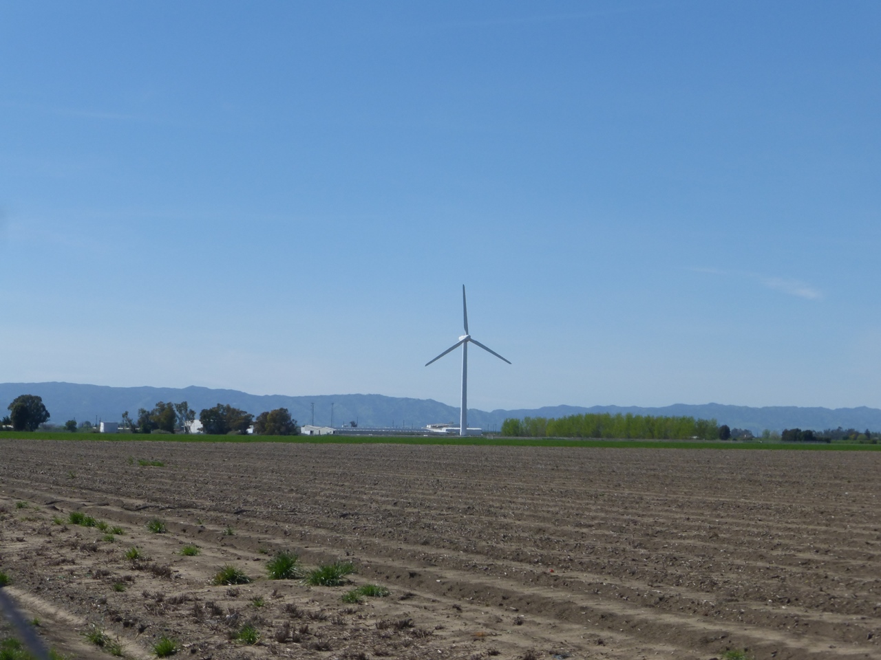 Between the towns is very enjoyable Riding through the farm fields A sign of the new world, a wind turbine as part of the farmer's world |