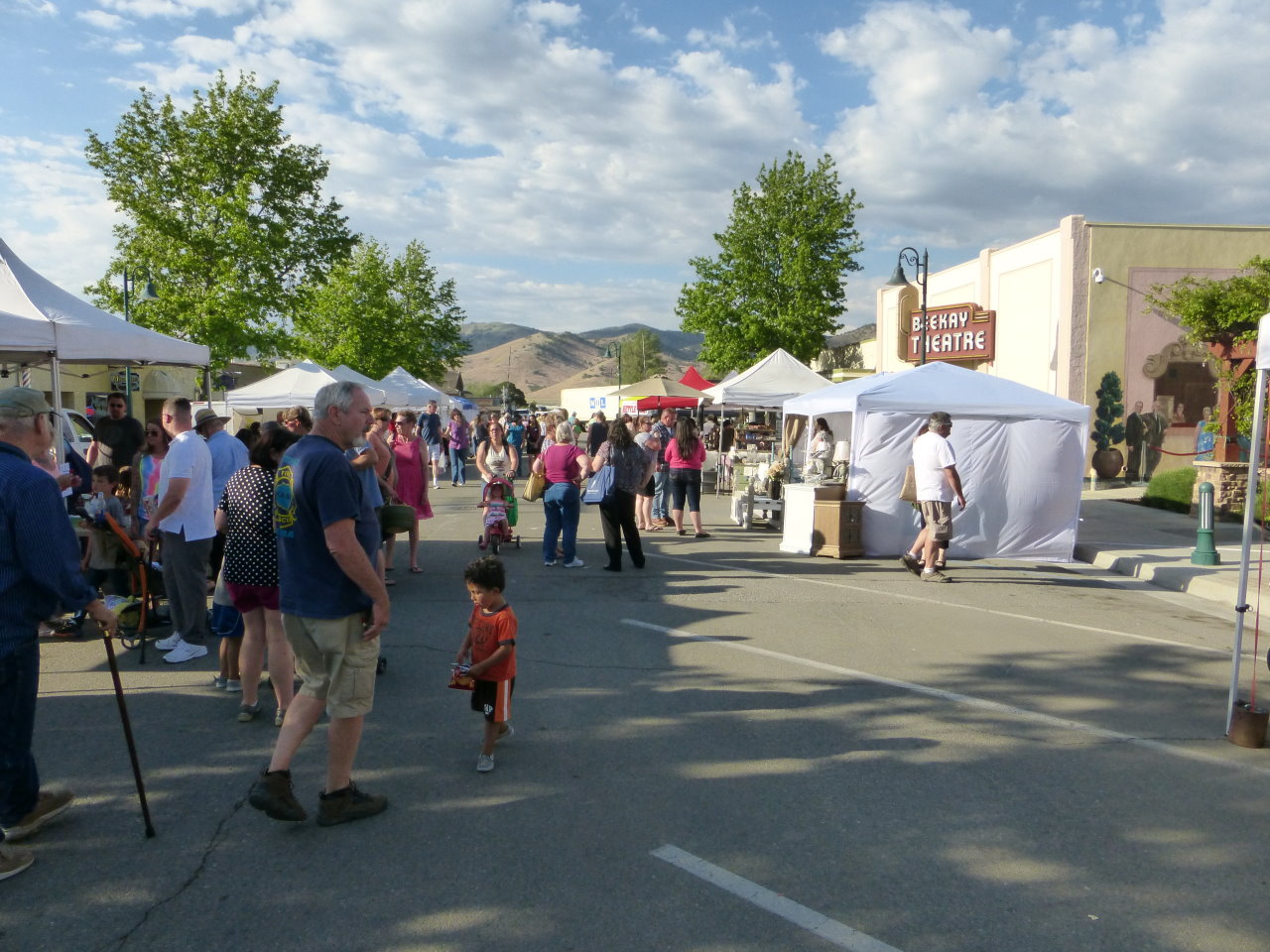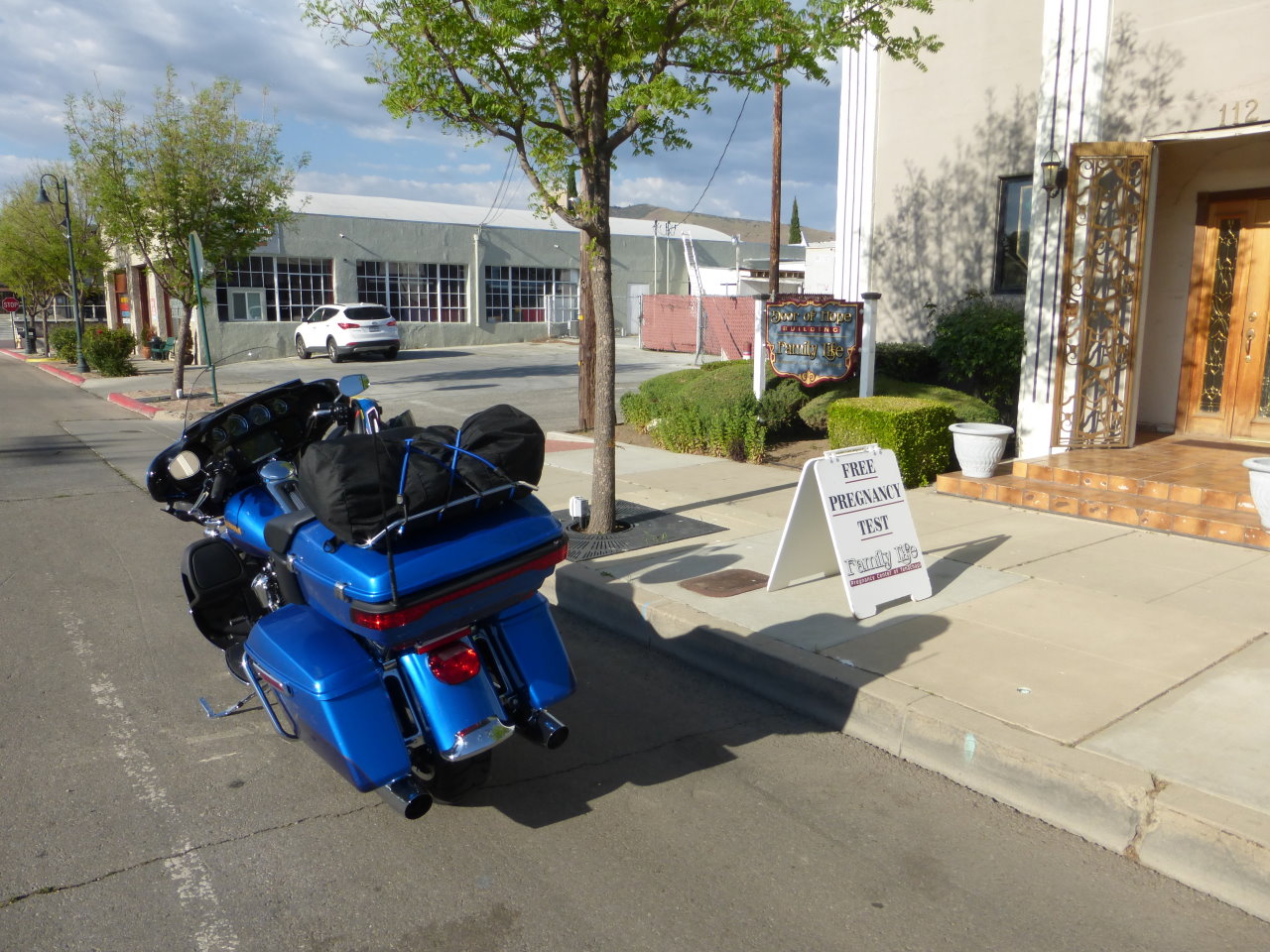 Bakersfield was 105 degrees and it was only a little after 4:00 So I decided to push on to Tehachapi County, CA Maybe it will help tomorrow if I can get through much of the desert in the AM I arrived and first thing headed to a McD for a tall iced tea Out front were three fellows with their bikes and of course we talked They are up from Ventura just for an out and back ride, returning tomorrow I headed into the heart of Tehachapi and there was a farmers market going on I parked nearby and took the opportunity for a pregancy test Thankfully, it came out negative There was something for everyone. A local brewer, so I tasted his wares And for my Niece (D) a friendly pug There is an old theater (theatre?) with a painted-on audience A nice Best Western and soon to sleep |