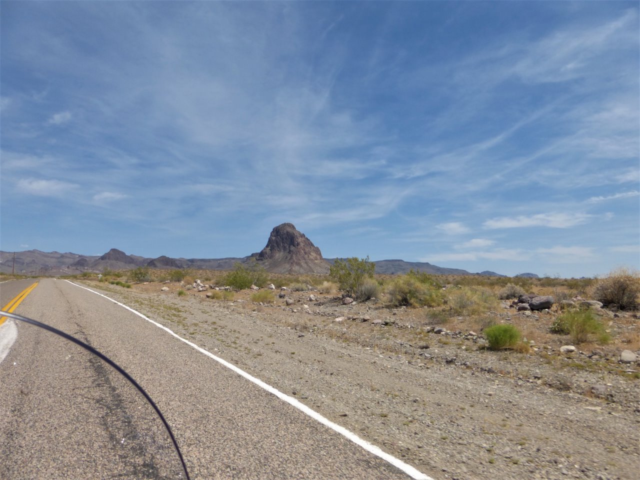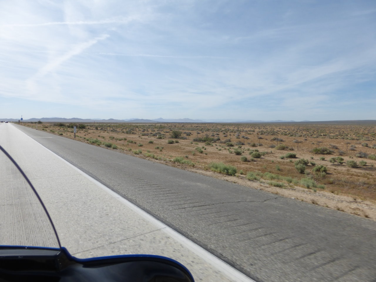 8:00 Good thing I did, it was already about 78 degrees and rapidly warming I'm glad I cut into today's route yesterday because this was probably the longest day effortwise for this trip and the segment between Barstow and Needles at over 140 miles perhaps the longest segment with the possible exception of between Salt Lake City and Wendover later and this after the long stretch, 90 miles from Tehachape to Barstow The desert goes on forever |