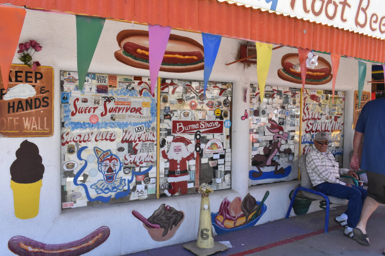 Sometimes you just get lucky... I was planning on stopping just for fun in Seligman a Route-66 tourism mecca To my surprise, they were having a huge auto show today Cars of all descriptions are parked around town or are slowly driving down the main drag I took so many photos of the cars and people that I added an extra web page just for those. Click Here for that page |