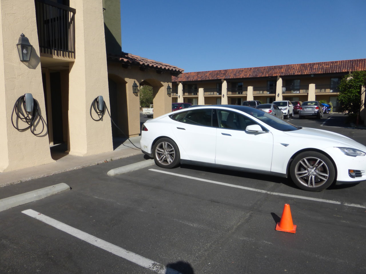 about 8:30 On the way out, I noticed a Tesla charging up The motels must be getting smart and installing chargers |