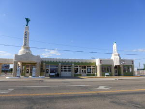 a tiny little town that Route-66 bypassed It has never recovered. It does have the distinction that it is at exactly the halfway point of old Route-66 from Chicago to Long Beach Midpoint Cafe directly across the road is currently open again It has a long history of being open for a while and then folding again for lack of business |