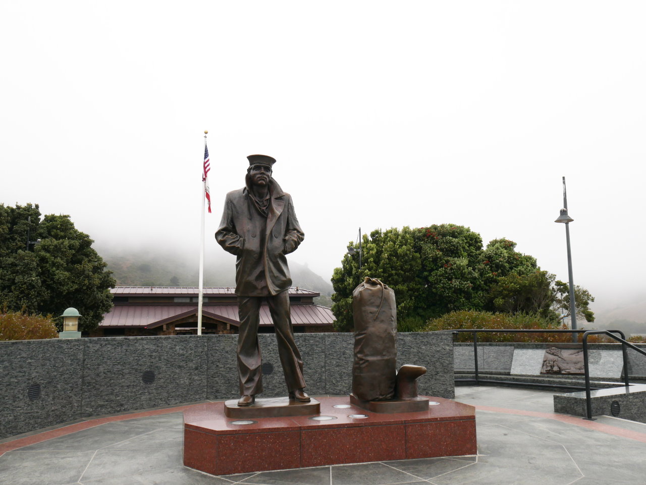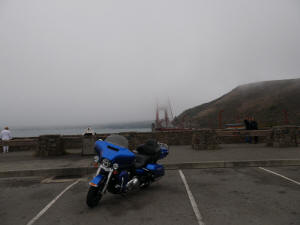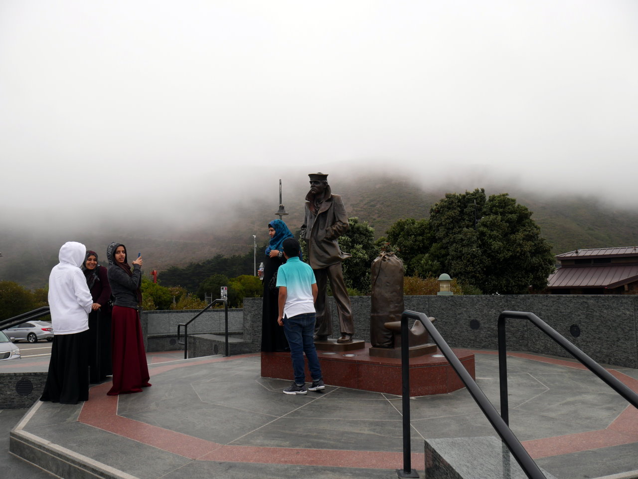 My first stop this morning was at the Golden Gate Bridge Vista Point at the north end The bridge was foggier at the south end than the north fog partially obscuring even the lowest cross beam of the towers. while resting and taking photos, a man from Florida stopped to talk. I love when that happens some ladies were taking photos of one another by the lone sailor they were apologentic about monopolizing the scene I told them it was much more interesting with them in it but they were too shy |