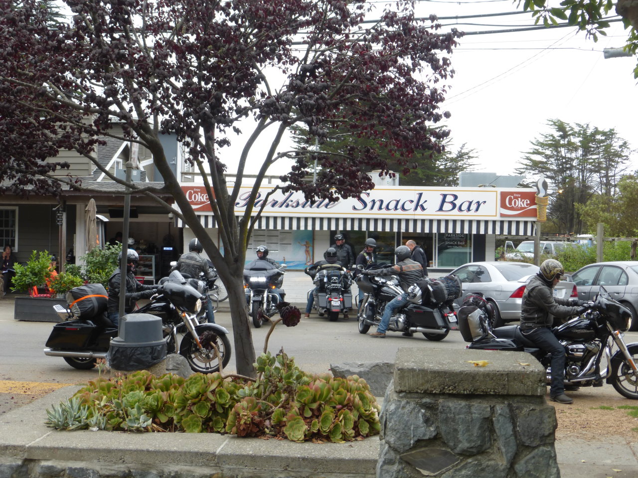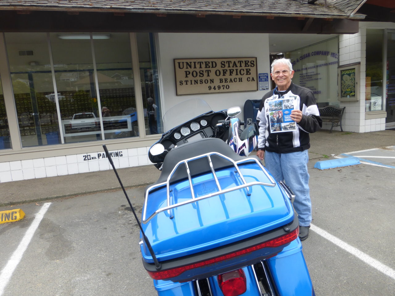 last year and I had to skirt Stinson Beach not so now A nice older woman was willing to take my photo She did a great job I noticed a bunch (7) of bikes and walked over to talk These fellows {8 of them) were from Switzerland You meet the nicest people, and some stand-offish Europeans too |