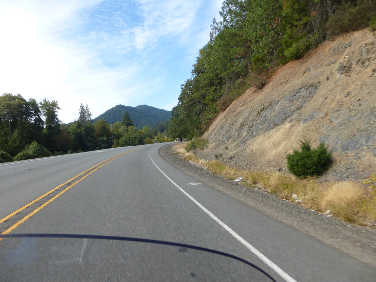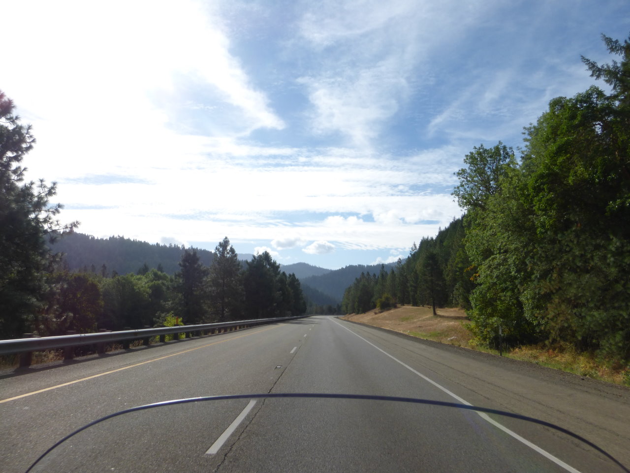 Roseburg, Oregon I got on the freeway at exit 124 The day started with a solid overcast. Down the road, the sun peaked through |