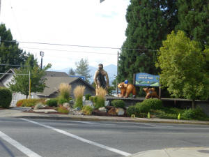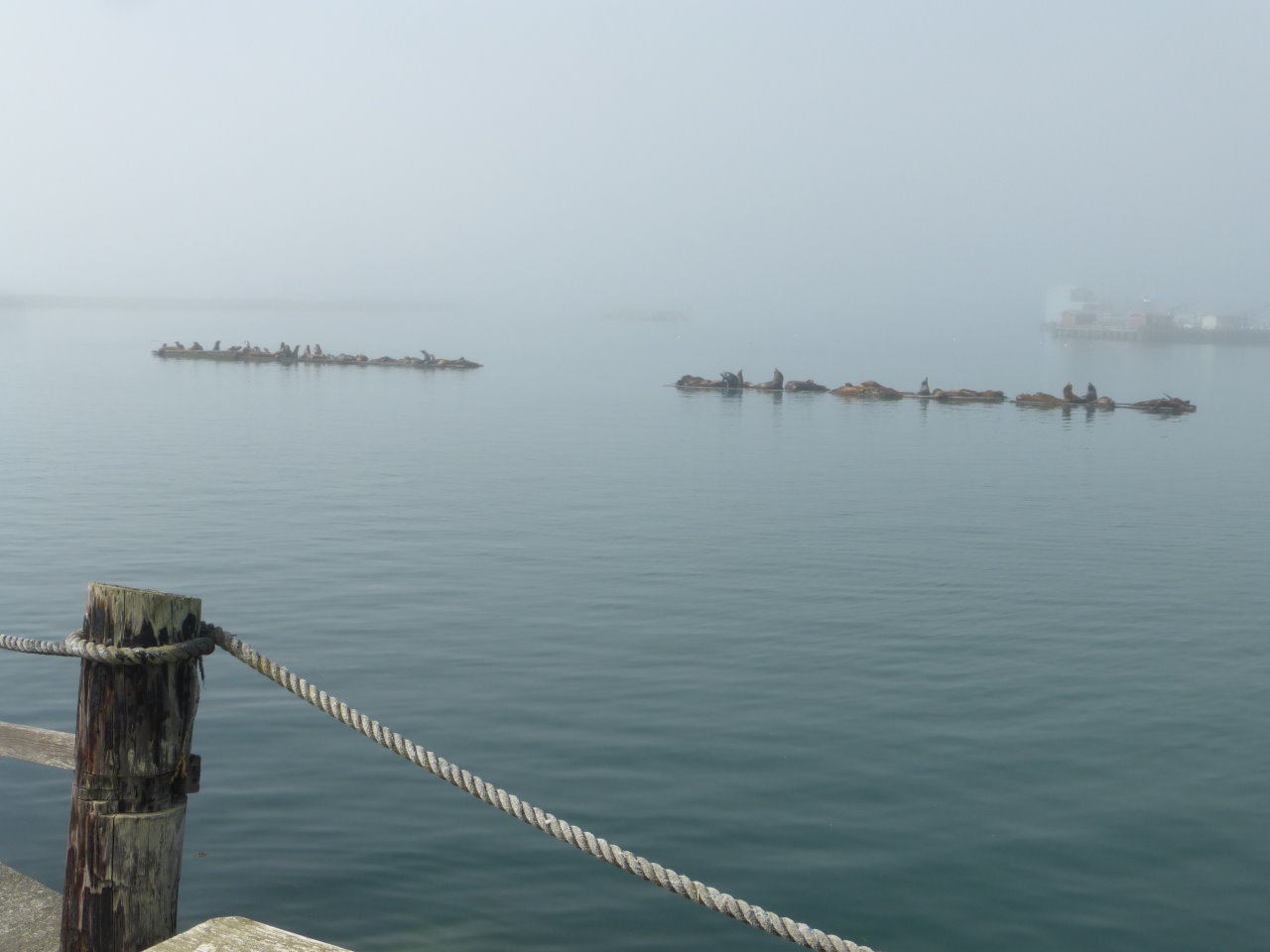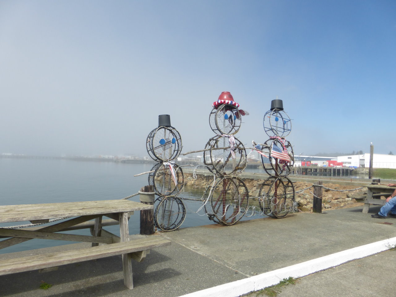 I stopped in Crescent City for lunch, fish tacos at a favorite restaurant They have sea lions and some sculptures from crab pots |