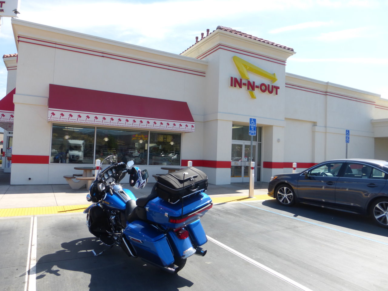I was delighted to find an In-n-Out Burger place in Ukiah and so I had lunch There was a couple there Tim and Cindy on a nice HD who had come in from the Sacramento area today they were thinking of heading over to the coast, Hwy-1 |