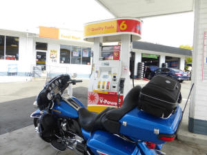 My tank still had gas from fueling up yesterday just before Garberville, the little "feed me" light came on I stopped and fueled up knowing I would have to again |